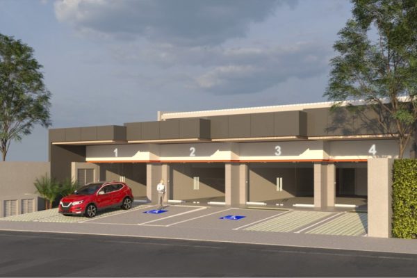 La plaza cuenta con 4 locales comerciales en un nivel, con áreas desde los 58m2 hasta los 99m2, baños en cada local, zona verde y 8 espacios de parqueo.